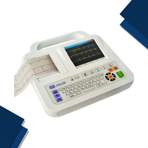 Vesta 305i is the new improved generation 3 channel ECG, which incorporates innovative design in compact and light weight device, ideal for camps and bedside ECG diagnosis 12 leads simultaneous acquisition 5.6" colour graphical TFT display with view angle Printing options ie: rhythm lead, medians, enlarge median, graphical axis, measurements and interpretation. Qwerty soft touch keypad to enter patient and clinic information Axis graph and measurement in display PDF format data storage and transfer to USB pen drive Onboard LED indicator for battery status Digital filters to eliminate baseline drift, AC and EMG interference 16 types arrhythmia detection in interpretation 3 printing modes (light mode 4x3, conventional mode 3x1, 3x1 without median) Isolation protection against defibrillation On screen real-time clock with date Internal ECG data storage upto 500 patients Mains and battery operated